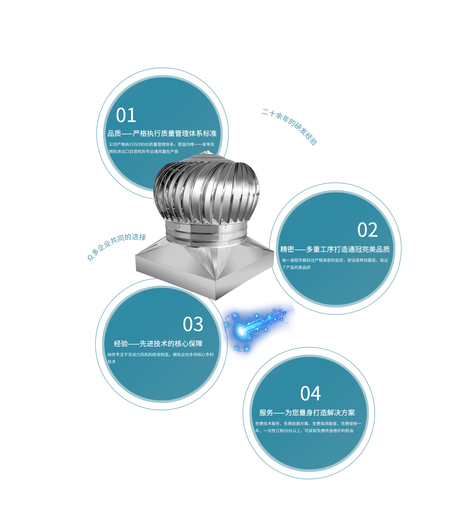 天長市通冠無動力風(fēng)機有限公司,是集研發(fā)、生產(chǎn)、銷售于一體的,專業(yè)無動力風(fēng)機生產(chǎn)廠家。公司坐落于205國道南京與揚州之間,位于省級高新經(jīng)濟(jì)技術(shù)工業(yè)園,交通便利。“通冠”有著一支技術(shù)精湛、服務(wù)非凡的隊伍。所有一線技術(shù)工人技術(shù)熟練、質(zhì)量意識強。公司嚴(yán)格執(zhí)行ISO9000質(zhì)量管理體系,一貫貫徹“以質(zhì)量為生命”、“以信譽為根本”、“以服務(wù)為基礎(chǔ)”的理念···[查看詳細(xì)]